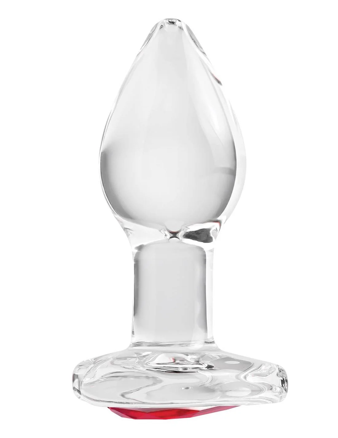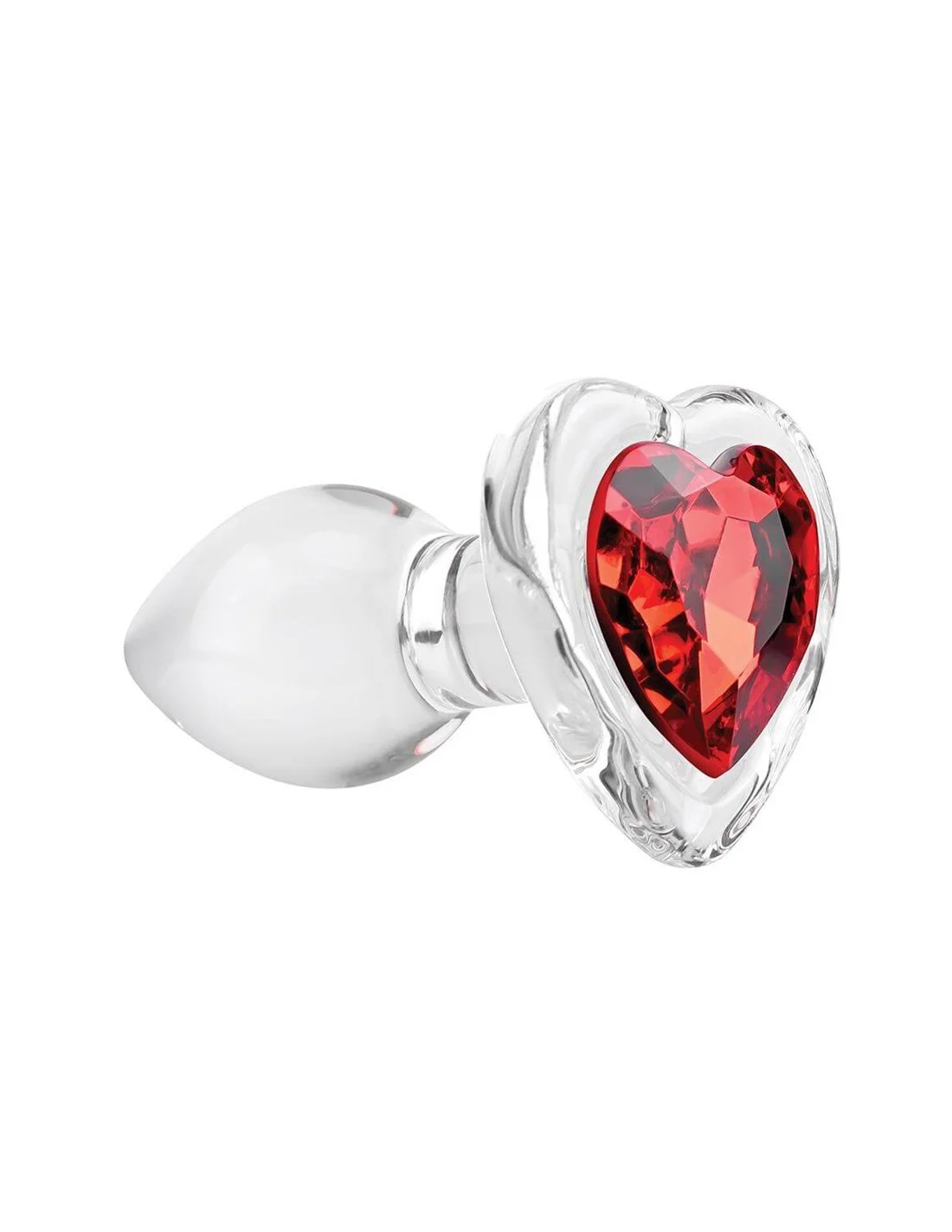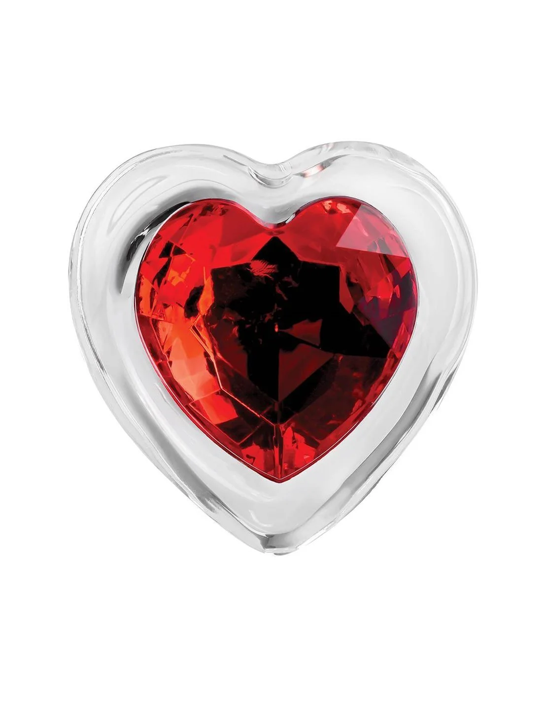 Kleine glazen plug met hartvormige rode edelsteenbasis