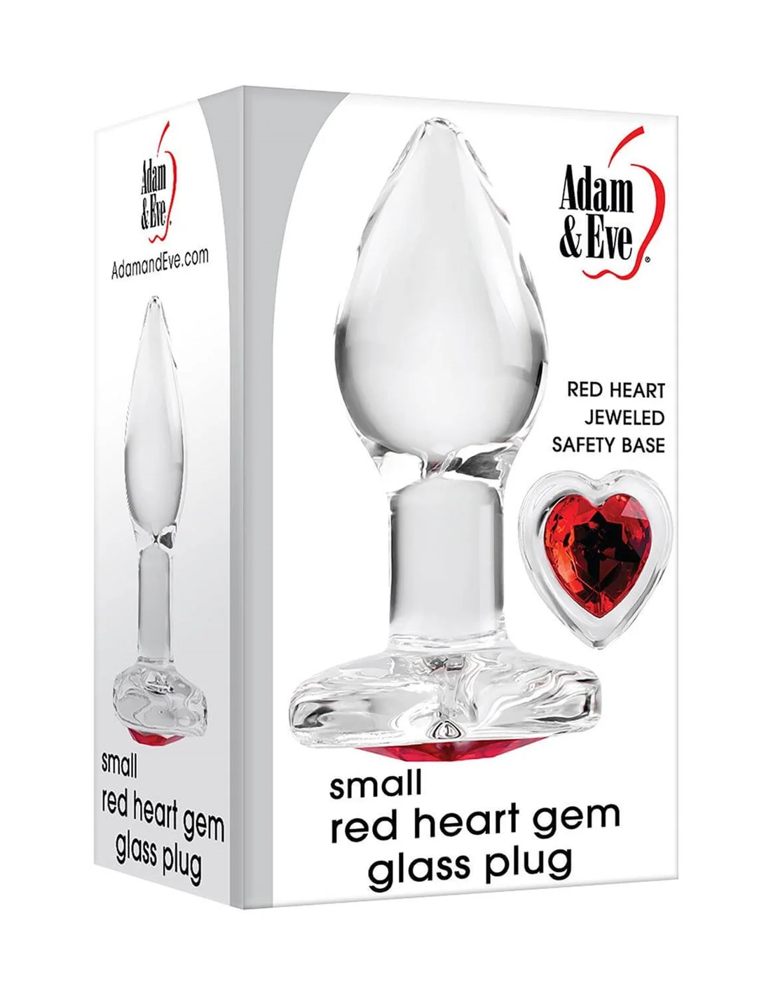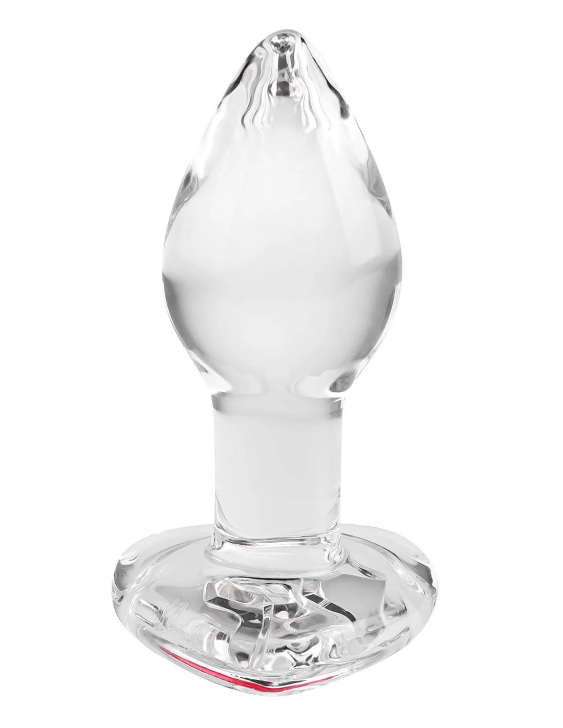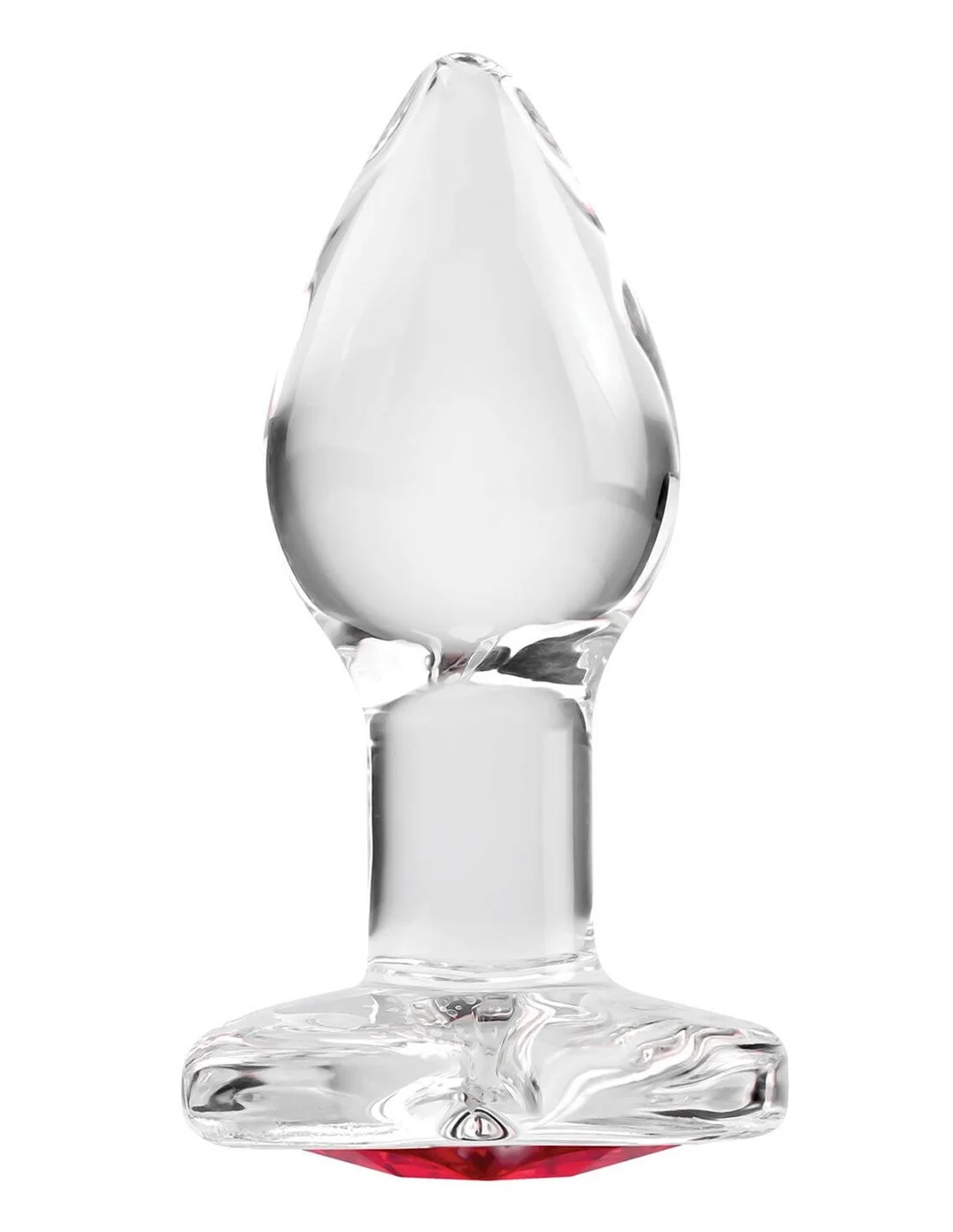 Kleine glazen plug met hartvormige rode edelsteenbasis