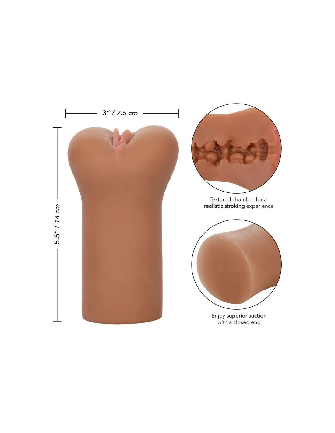 Het gesloten ontwerp zorgt voor superieure zuigkracht, terwijl de uniek getextureerde kamer en het ultrazachte, rekbare PureSkin-materiaal opwindend zijn met een levensecht gevoel.