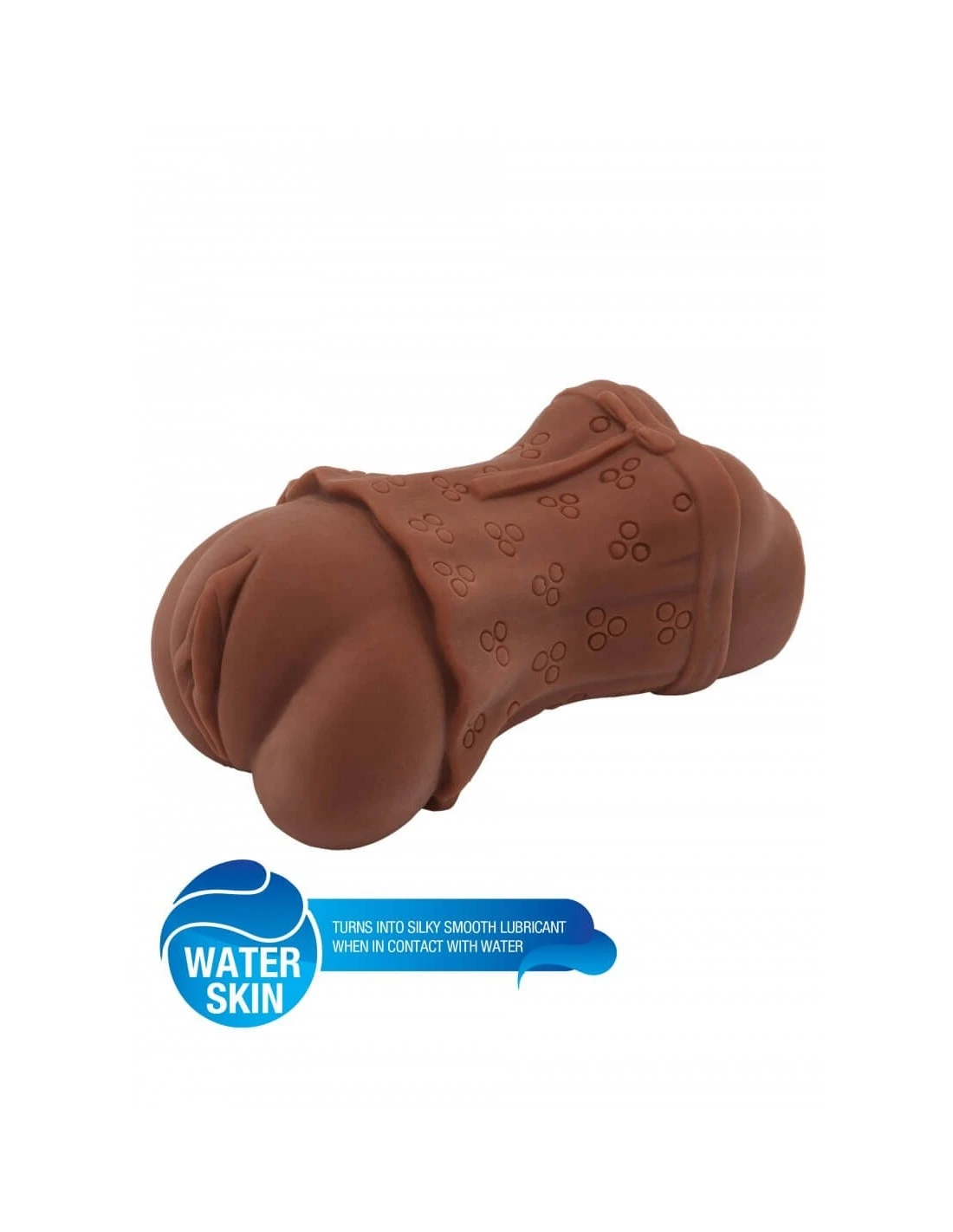 Deze hand-held masturbator is gemaakt van ultra-levensechte Waterskin: een uniek TPR materiaal dat super glad en glibberig aanvoelt als je er water aan toevoegt.