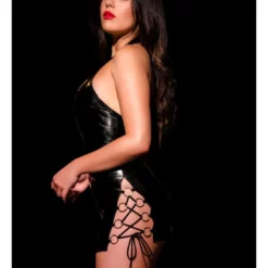 Noir Handmade Wetlook Halterjurk Met Netstof Cups XL