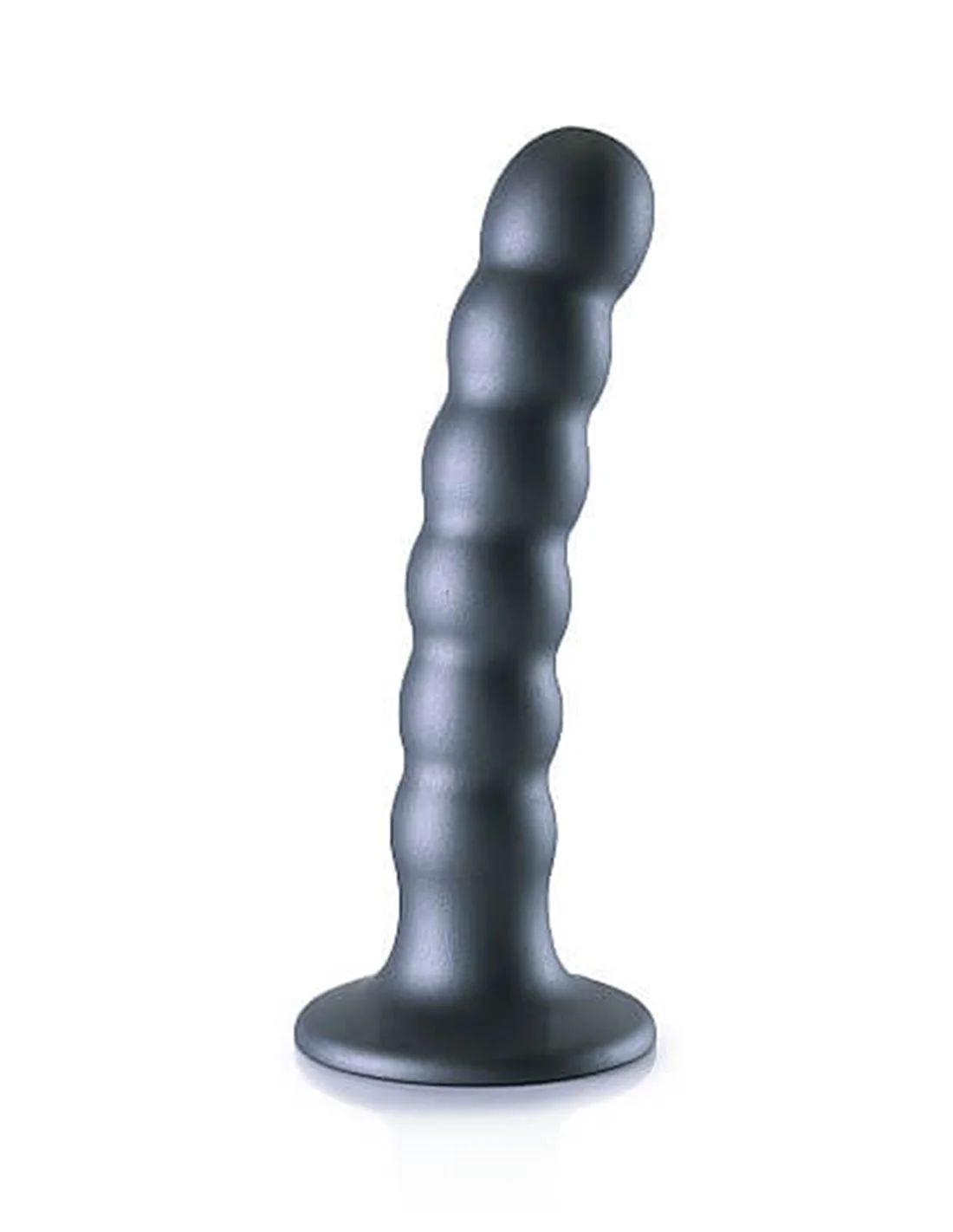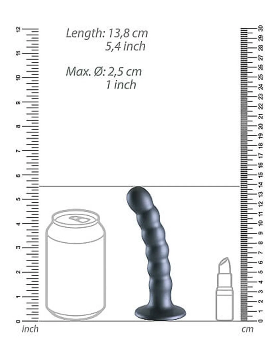 De 5” / 13 cm gebobbelde G-spot silicone dildo, met een sterke suction cup en een prachtige metallic kleur, is uniek in zijn klasse. De liquid silicone geeft een extra zacht gevoel vs traditioneel silicone.