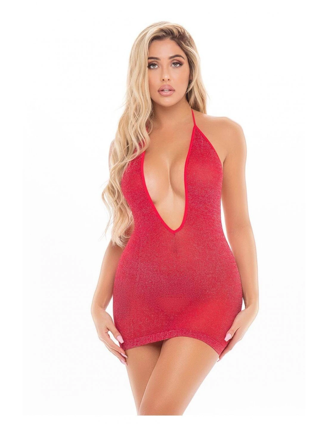 Mini-jurk met halternek. Gemaakt van sprankelende transparante stof.