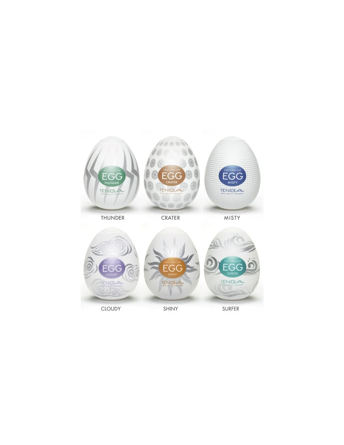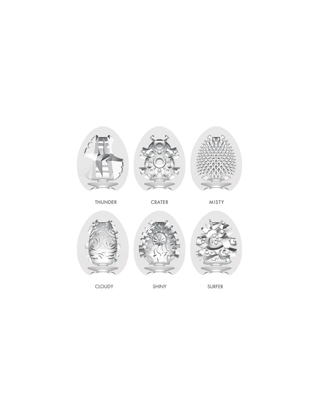 Sixpack masturbators in de vorm van een ei. Deze collectie bevat zes verschillende structuren.